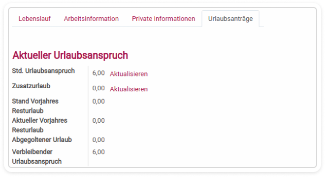 Urlaubskontingent direkt im Mitarbeiterprofil aktualisieren