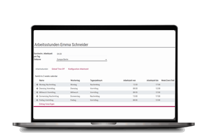Weisen Sie jedem Mitarbeitenden ein eigenes Arbeitszeitmodell zu, z. B.: