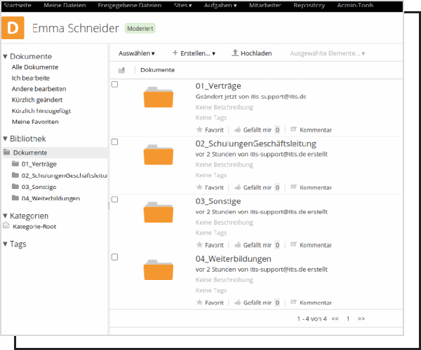 Jeder Mitarbeiter erhält seine eigene digitale Seite im Dokumentensystem, auf der Dokumente automatisch kategorisiert und in strukturierten Ordnern abgelegt werden.
