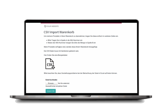 Fordern Sie einen Demowebshop mit aktiviertem CSV-Import an und erleben Sie die Funktion live.