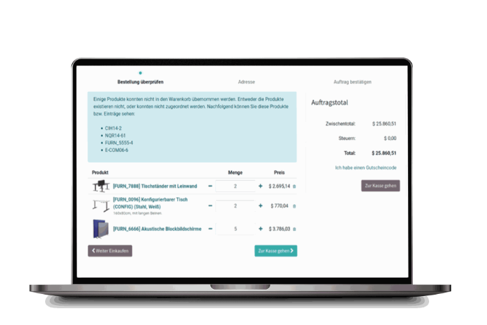 Ihr Warenkorb wird sofort mit allen Artikeln aus der Datei gefüllt.