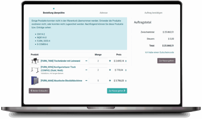 Produkte, Mengen, Preise und Verfügbarkeit überprüfen