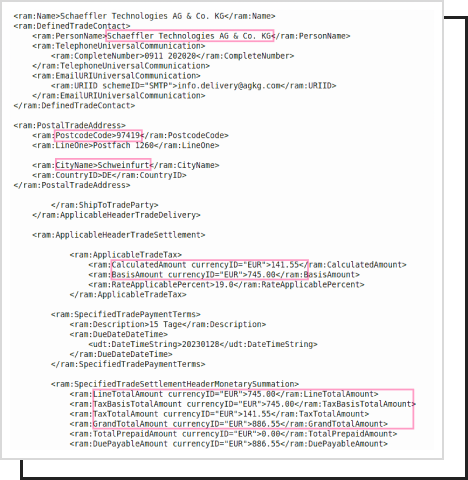 - Das System des Empfängers erkennt die XML-Datei und verarbeitet sie automatisch