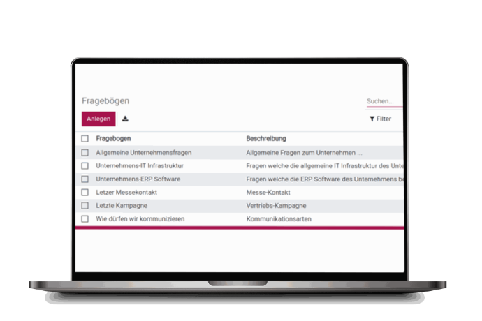 Mit unserem Modul können Sie maßgeschneiderte Profilierungs-Fragebögen erstellen und an jeden Kundenkontakt anhängen.