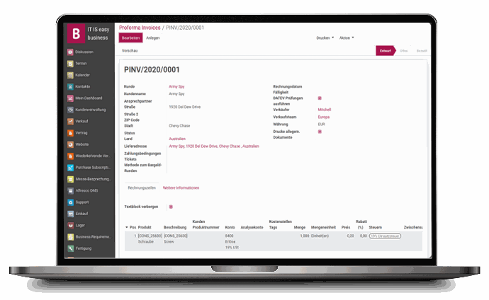 Mit ITISeasy.business ist das Erstellen von Proforma-Rechnungen einfach, unabhängig und vollständig flexibel –